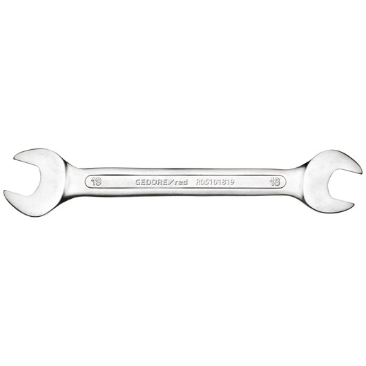 GEDORE red R05101819 Doppelmaulschlüssel 18x19 mm, Oberfläche matt-satiniert verchromt, Chrom-Vanadium-Stahl, Doppelmaulschlüssel lang, metrisch