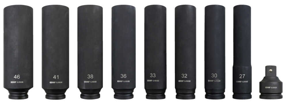 - Stückliste: Kraftschrauber-Satz 27 30 32 33 36 38 41 46 mm, incl. Adapter 1 Zoll